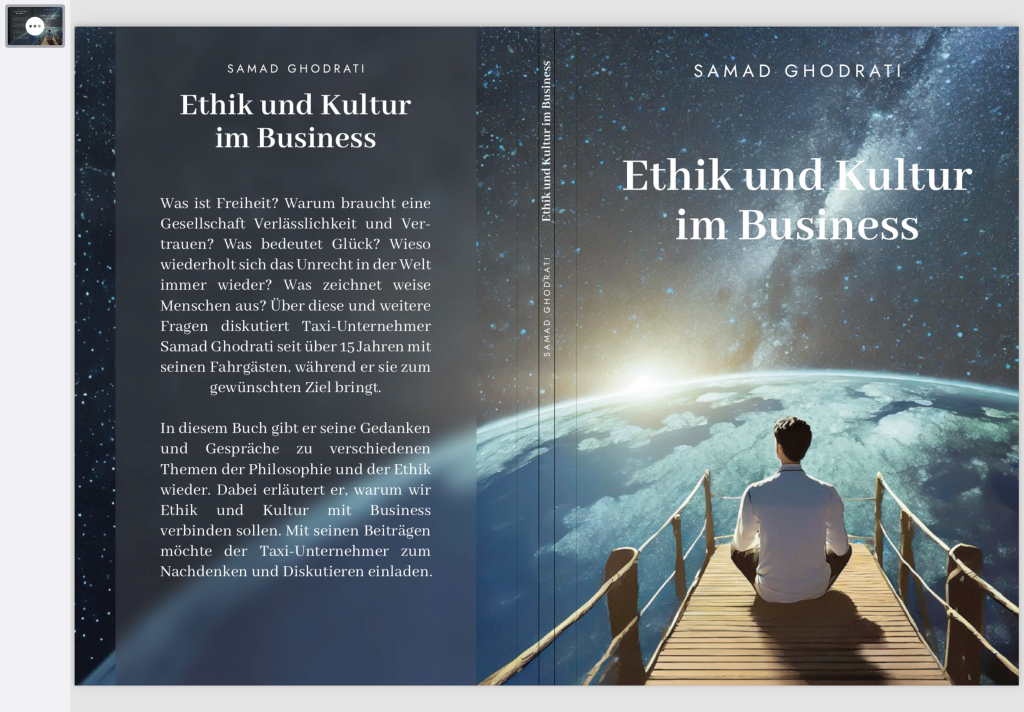 In seinem Buch gibt er seine Gedanken und Gespräche zu verschiedenen Themen der Philosophie und der Ethik wieder. Dabei erläutert er, warum wir Ethik und Kultur mit Business verbinden sollen. Mit seinen Beiträgen möchte der Taxi-Unternehmer zum Nachdenken und Diskutieren einladen.